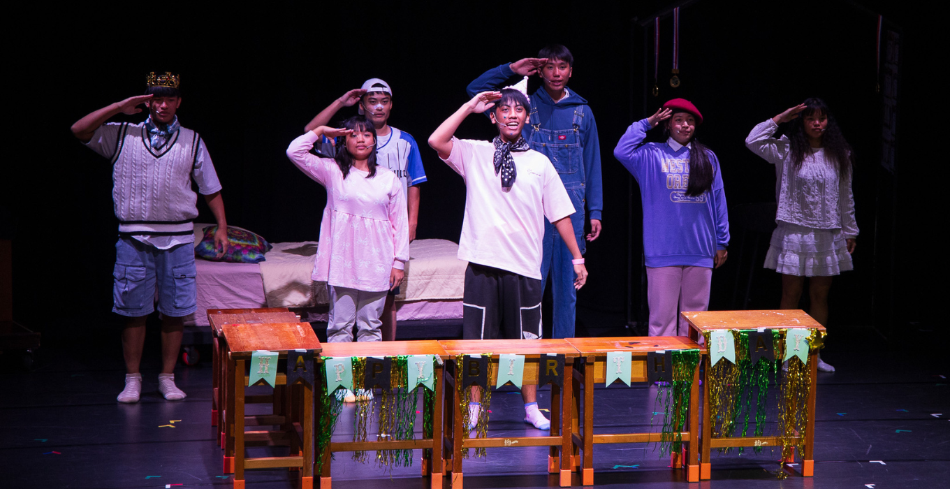 歷經兩個月的密集特訓,學生們不僅要消化龐大的英文台詞,還要同時應付歌舞走位與表演節奏的高度壓力;幕後的JUNYI TECH團隊(註)也同步進行精密而繁複的技術整合。在這樣高強度的挑戰下,黃同學堅定地說:「既然選擇了,就不能退縮。比起表現得是否出色,更重要的是學會面對困難。」