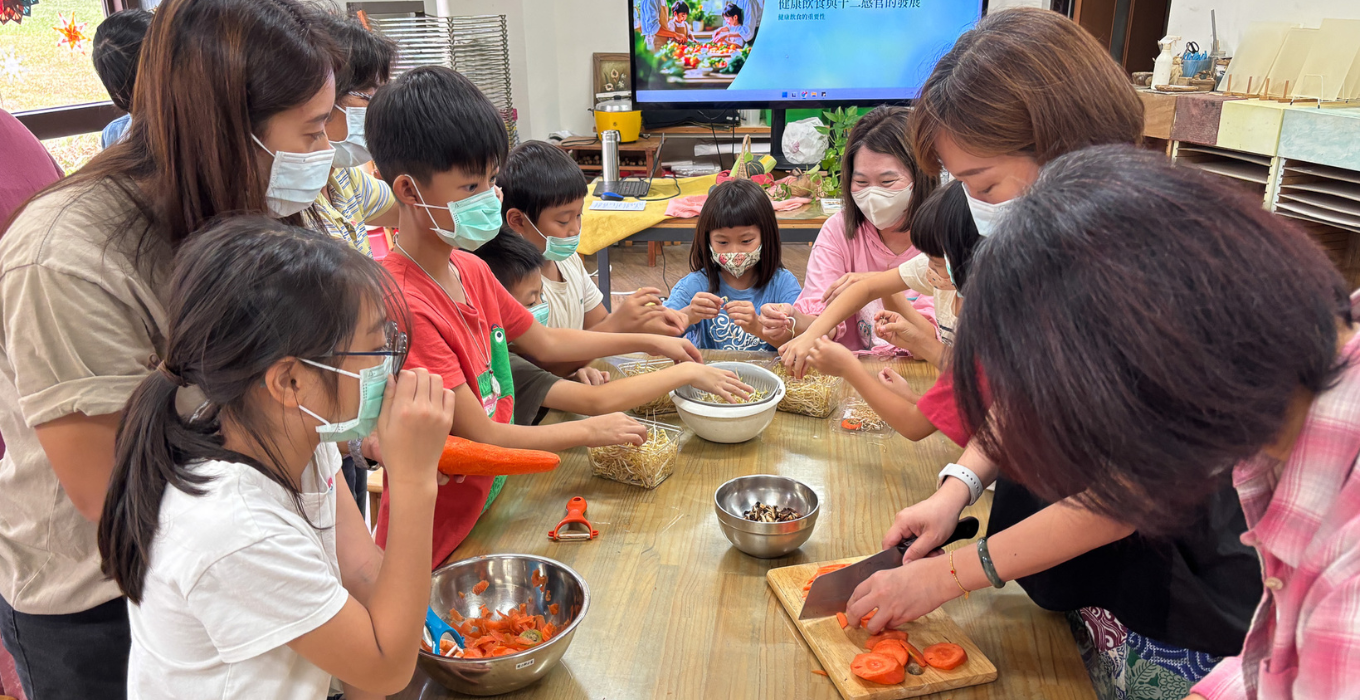 Parents began by recalling the most joyful meal they had ever experienced, expressing the emotions through color. They then moved into hands-on activities selecting vegetables, cooking, seasoning, and creating a welcoming table atmosphere. Children and parents chopped carrots, peeled corn, picked bean sprouts, stir-fried vegetables, cooked soup, and set the table together. When children who were usually picky eaters began eagerly eating green peppers and carrots, the parents were pleasantly surprised.