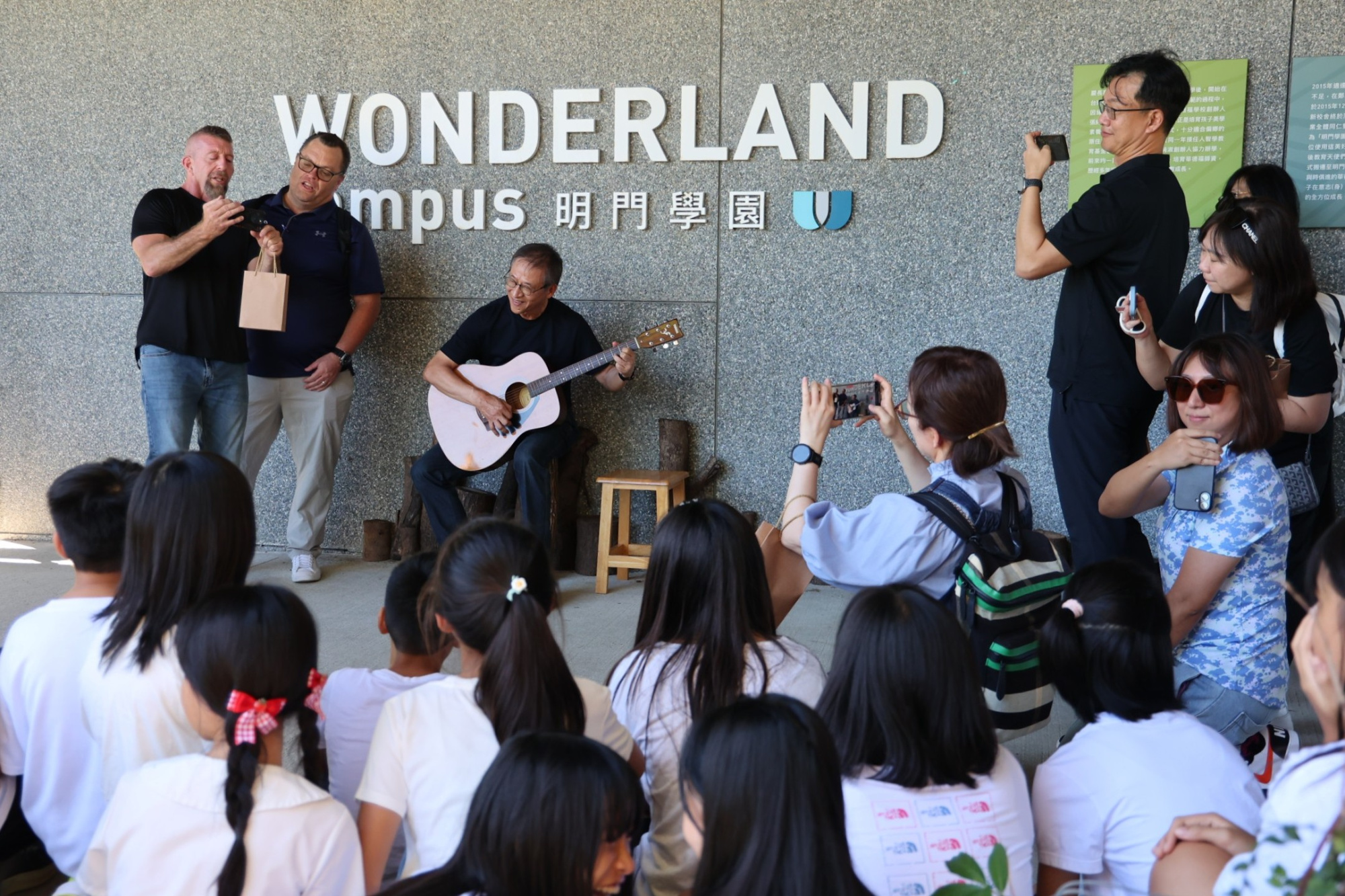 The atmosphere deeply moved Chair Cheng, who spontaneously picked up a guitar and, together with two foreign executives, performed an impromptu rendition of Pass It On. In this moment of interaction, the children’s sincerity and the guests’ goodwill were closely intertwined. This time of sharing love and blessings became one of Junyi’s most touching memories, carried through the campus in song and smiles.