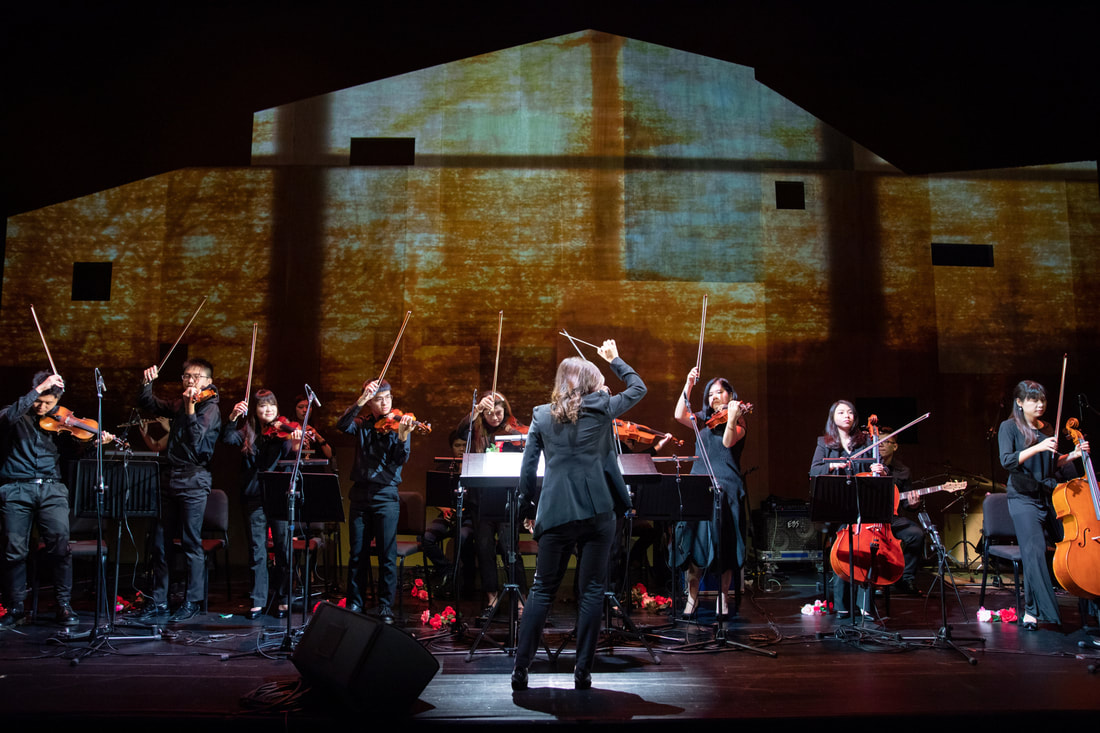 In recent years, the "Neo-Classical Chamber Ensemble" has actively sought to expand the audience's imagination of music presentation. For example, in the scene "Notre-Dame de Paris," they created a universe-like, thickly spiritual atmosphere. Besides the live orchestra's performance, composer Chiu Hao-Yuan organically modulated electronic sound materials, demonstrating a fragmented, delayed, and spatially expansive feeling. In the fifth scene, "Holy of Holies," electronic sound is the main sound, simulating sounds from the womb, waves, swirling memory fragments, and the innocent dialogue between child and father. These sounds have surpassed the realm of traditional instrument performance, and the addition of technology has been carefully considered and balanced.