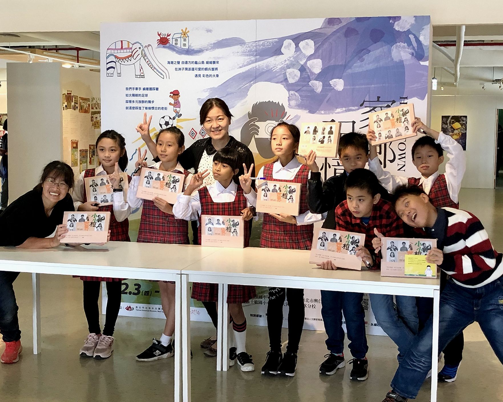 走進傍著淡水河出海口的恬雅展間,入口處的「作者親簽版」攝影詩集,是新北市淡水區屯山國小501班的攝影展開幕當天,9位孩子一字排開舉辦簽書會所留下的珍品。攝影詩集的出版以及為期2個月、橫跨2020和2021年的攝影展,是孩子們在10-11歲完成的夢想。